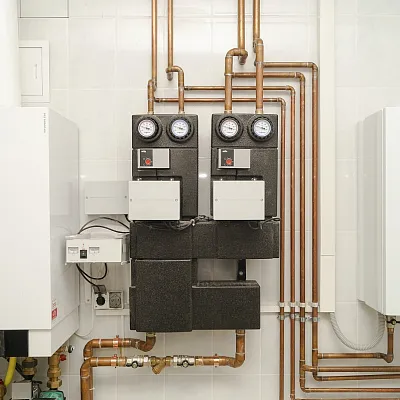 - Низкое или высокое давление в системе может быть вызвано поломкой циркуляционного насоса, воздушными пробками, засорением труб или теплообменика, утечкой теплоносителя, несбалансированностью контуров отопления и ГВС.