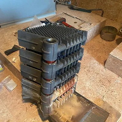 За 17 лет опыта работы с чугунными котлами, мы ни разу не встречали случая успешной сварки чугунных секций ине оказываем подобные услуги . Настоятельно рекомендуем не тратить свои деньги и время на данный вид работ.
